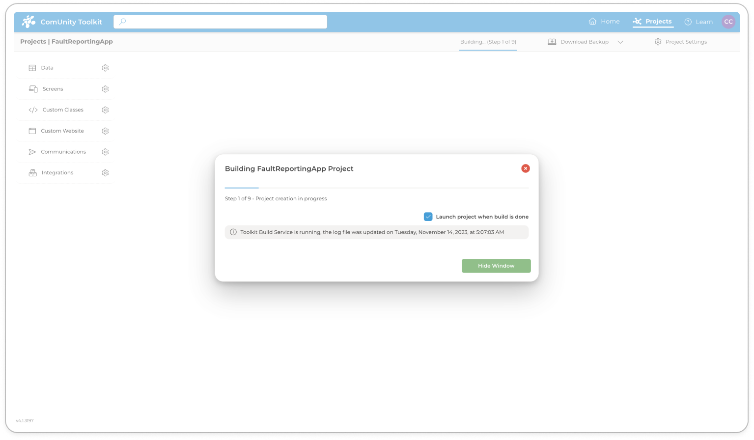 By utilising these features, you can effectively manage and monitor the build process of your project within the ComUnity Toolkit.