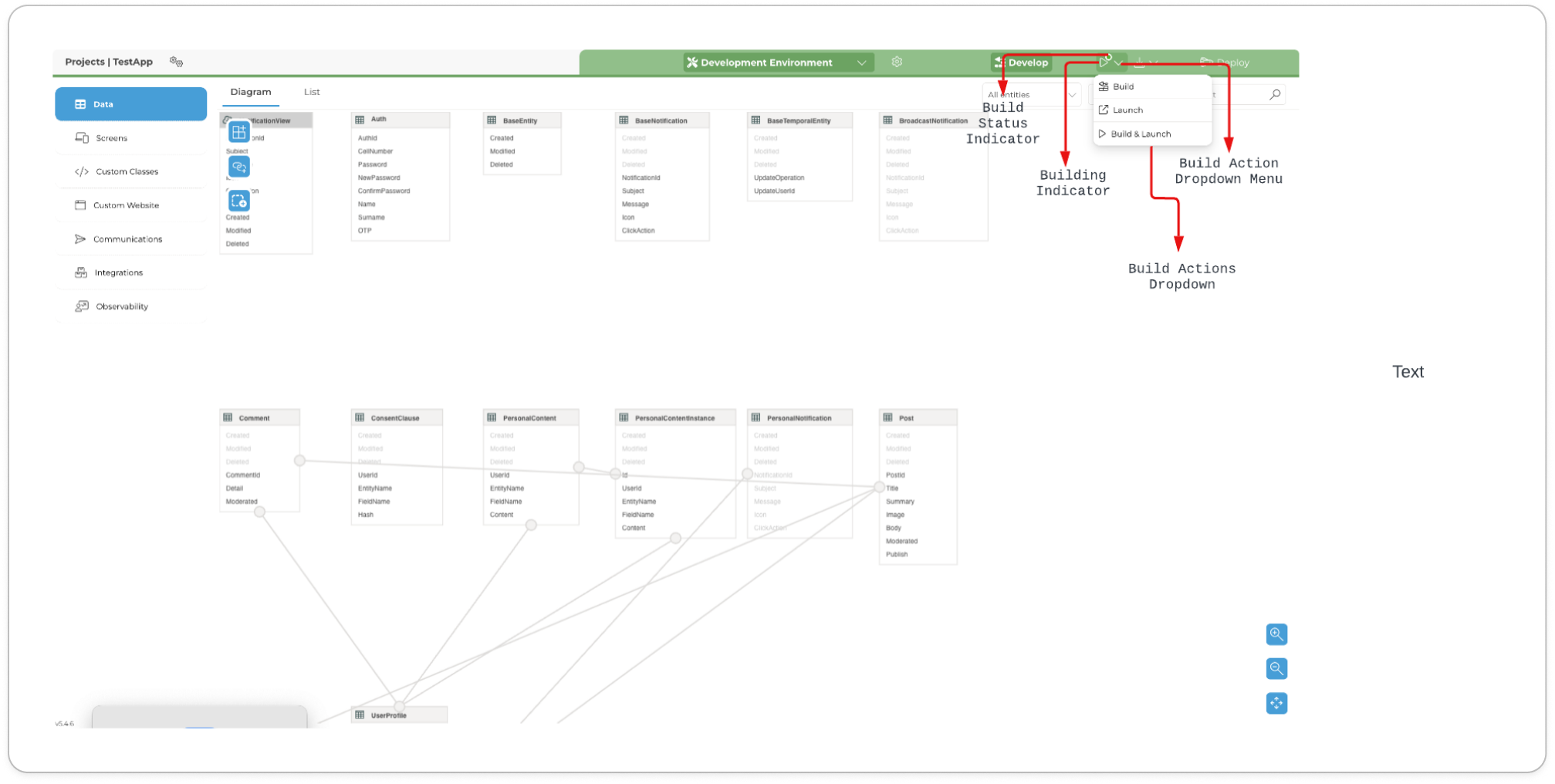 Build: The Build action is a critical step in initiating the build process for your project. When you click on the Build action, a modal window will appear on your screen, providing important information about the build progress.