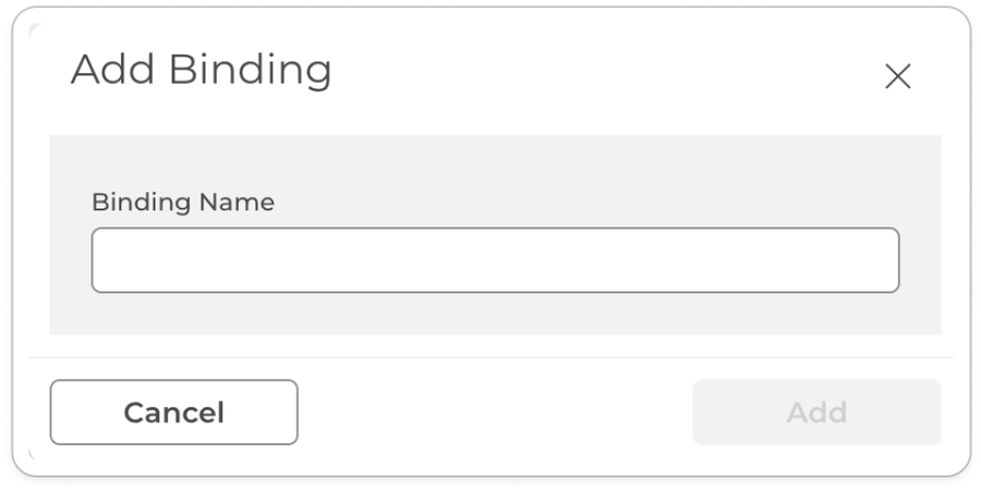 In the modal window, provide a add a unique binding for your application in the designated Binding Name box.