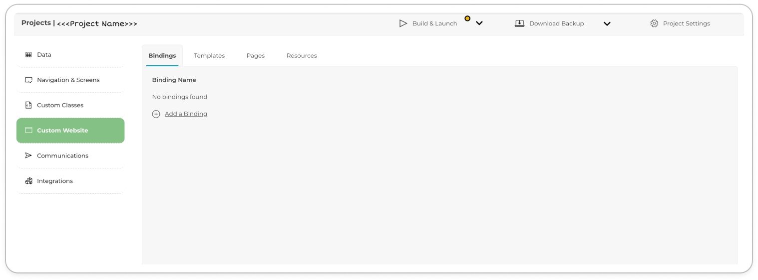 Open your project in the Toolkit and navigate to Custom Website then select the Bindings tab.