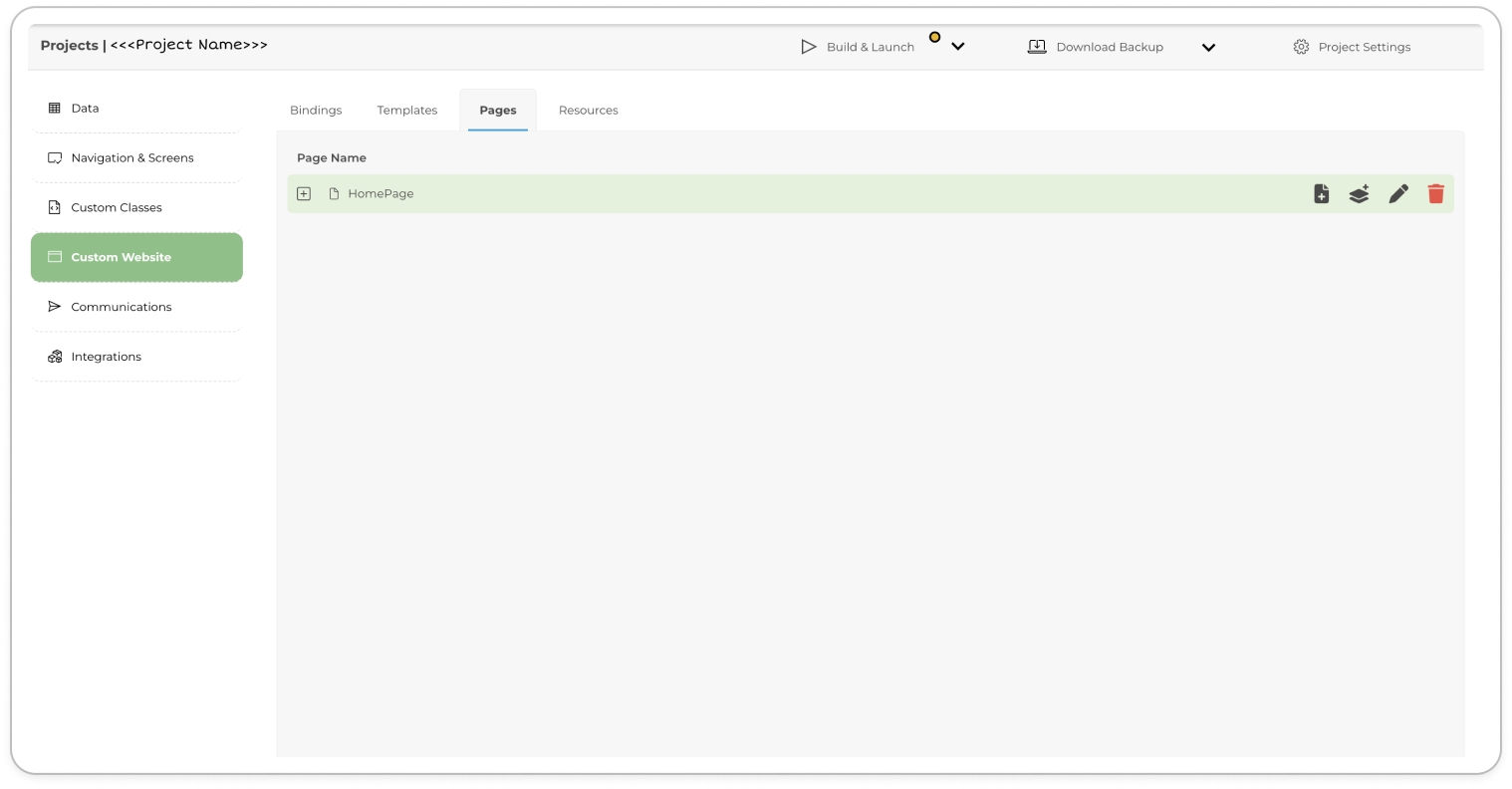 Open your project in the Toolkit and navigate to Custom Website then select the Pages tab.