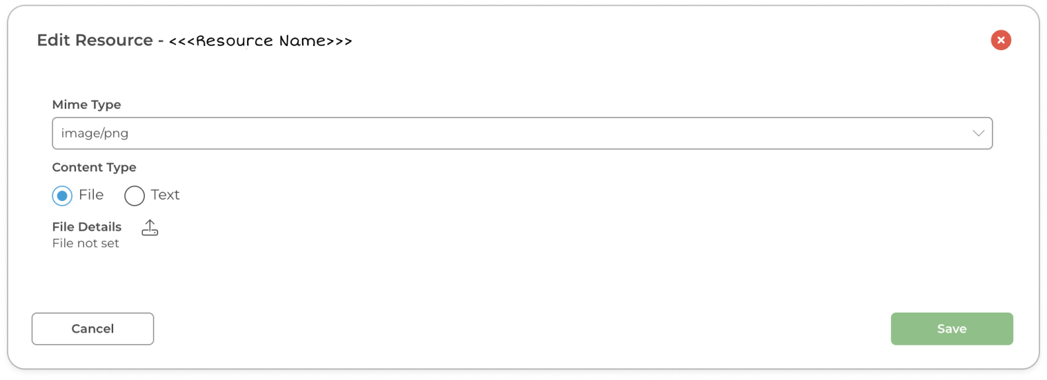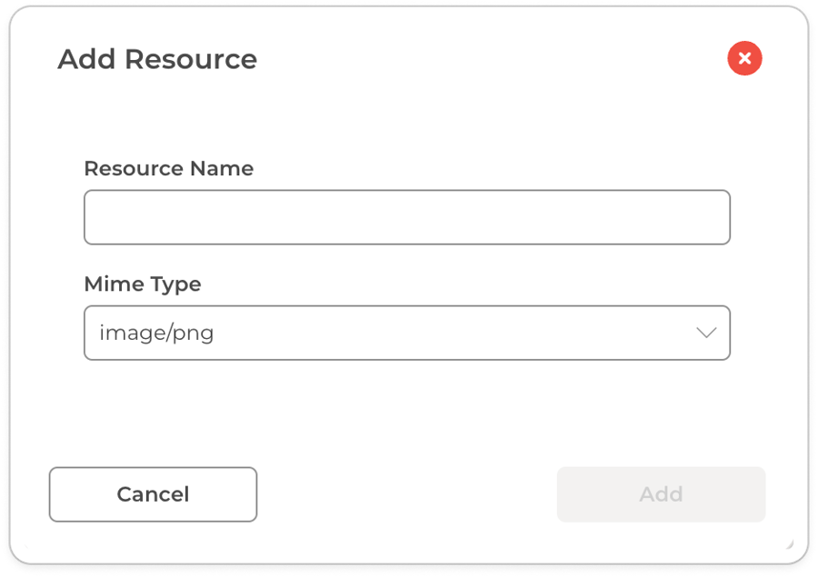 In the modal window, provide a add a unique page name in the designated Resource Name box and select a MimeType.