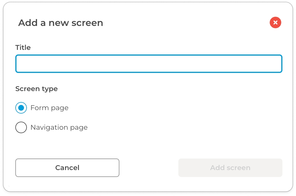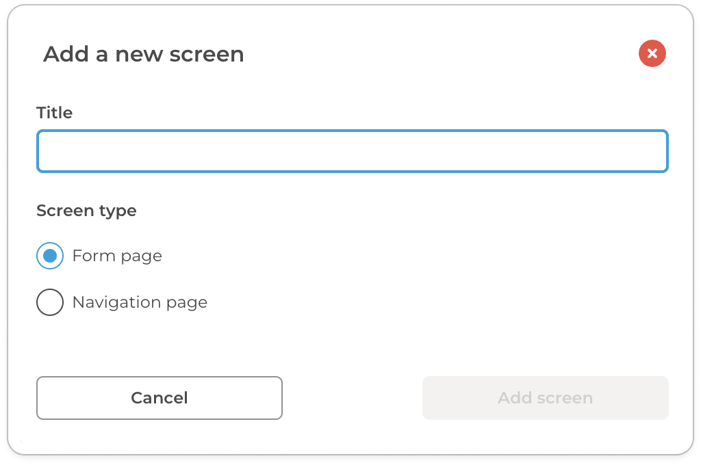 An Add a new screen modal window (see screenshot below) will appear. In the Title box, enter a unique title for the screen.