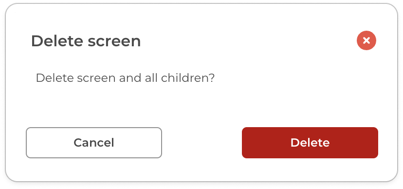 A modal will appear, providing an option to delete a screen and its children (screenshot shown below):