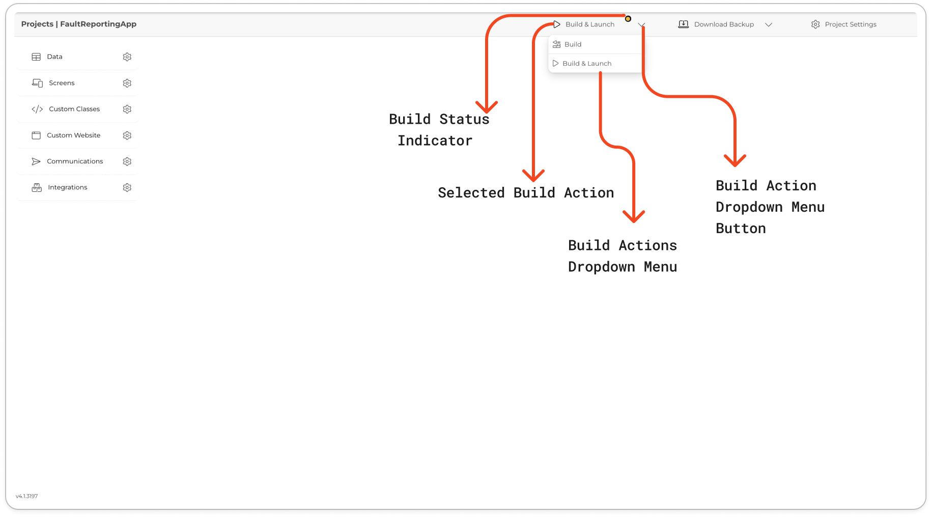 Build: The Build action is a critical step in initiating the build process for your project. When you click on the Build action, a modal window will appear on your screen, providing important information about the build progress.