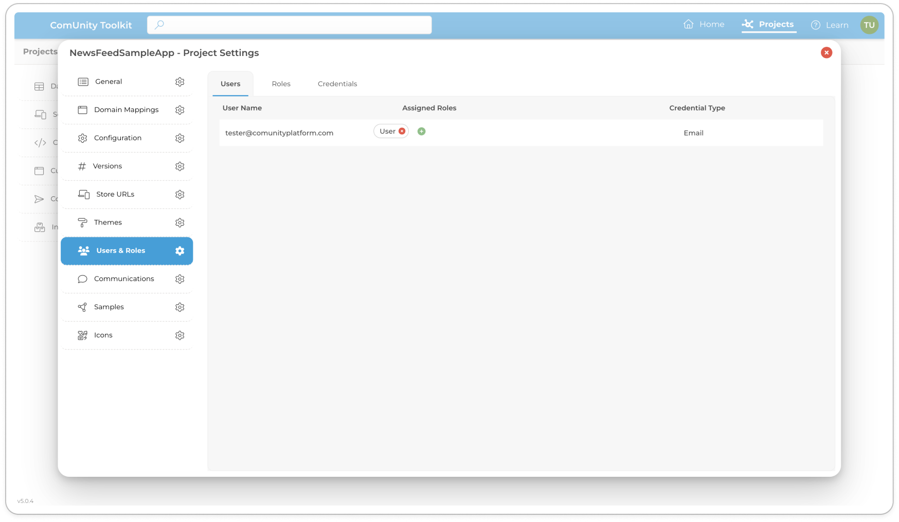 Open your project in the Toolkit and then select the Users & Roles tab in the sidebar.