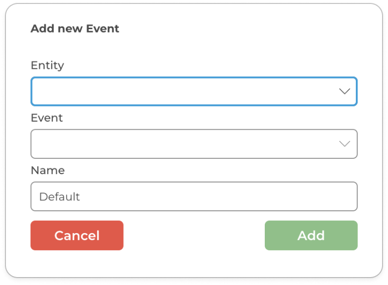 Add New Event modal window From the dropdown menu, select the entity you want to link the event to.