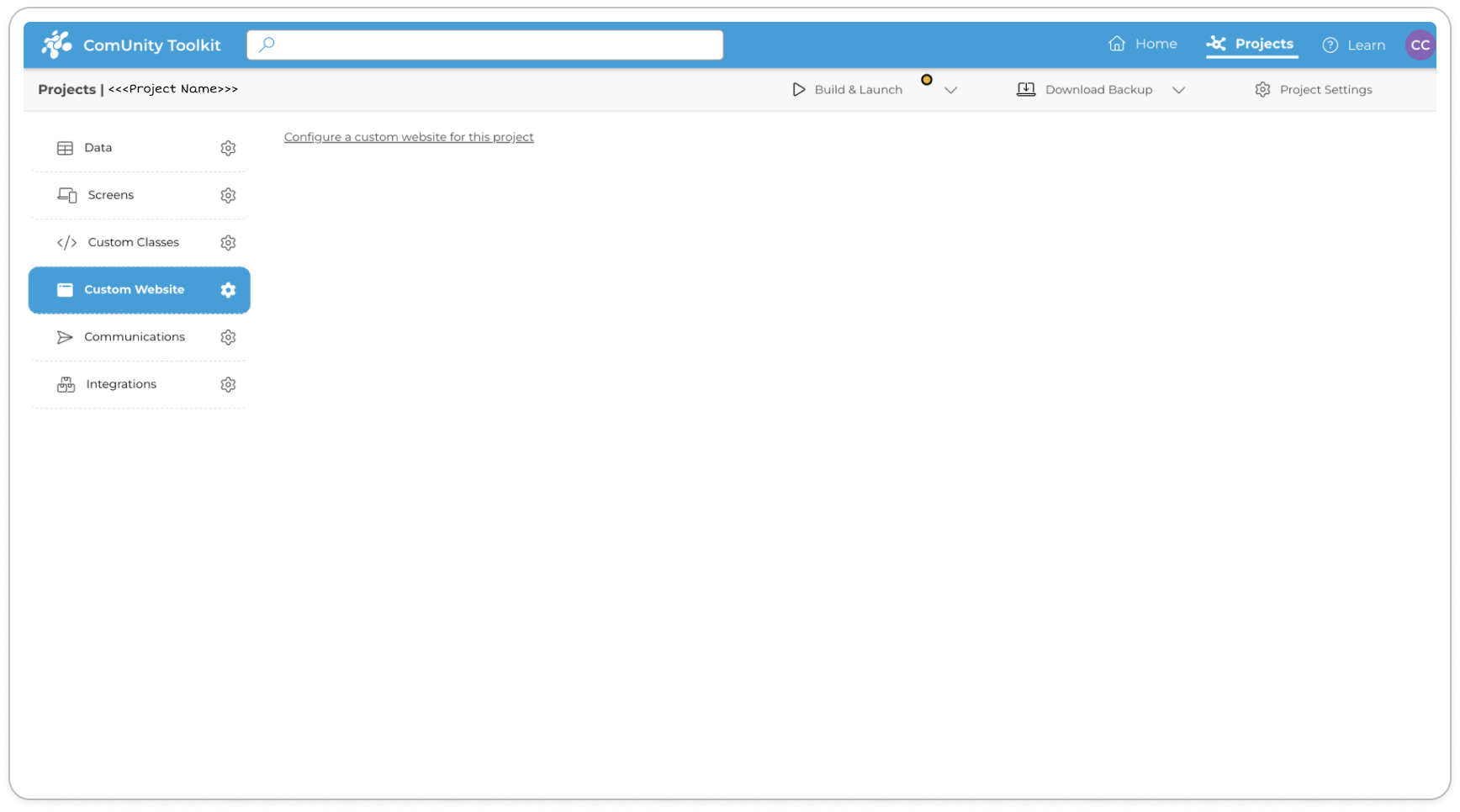 Open your project in the Toolkit and navigate to the Custom Website section.